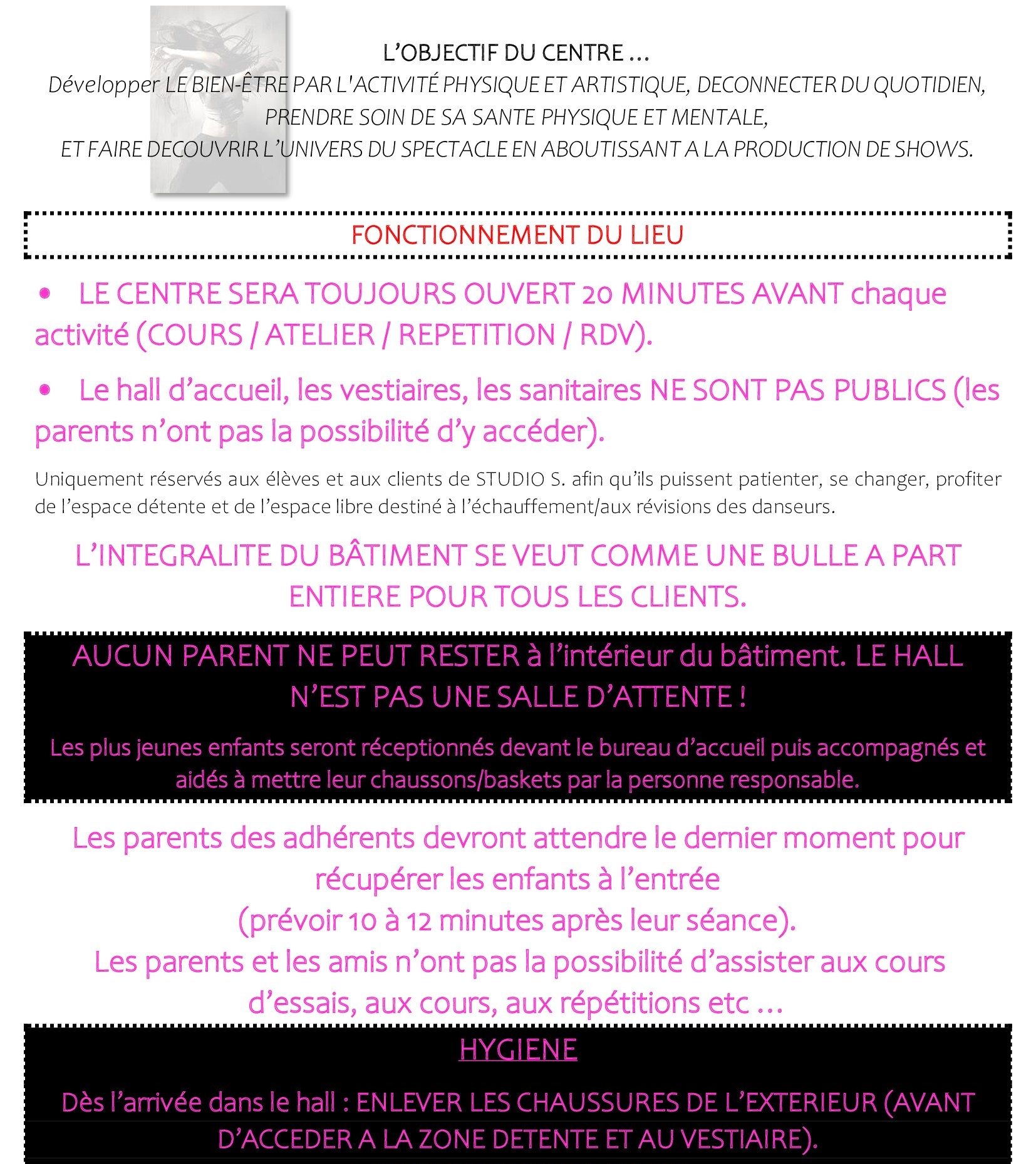 REGLEMENT INTERIEUR STUDIO S.